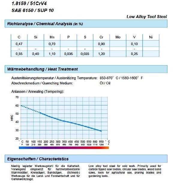 51CrV-4 - 1.8159 - AISI 6150 Rugóacél
